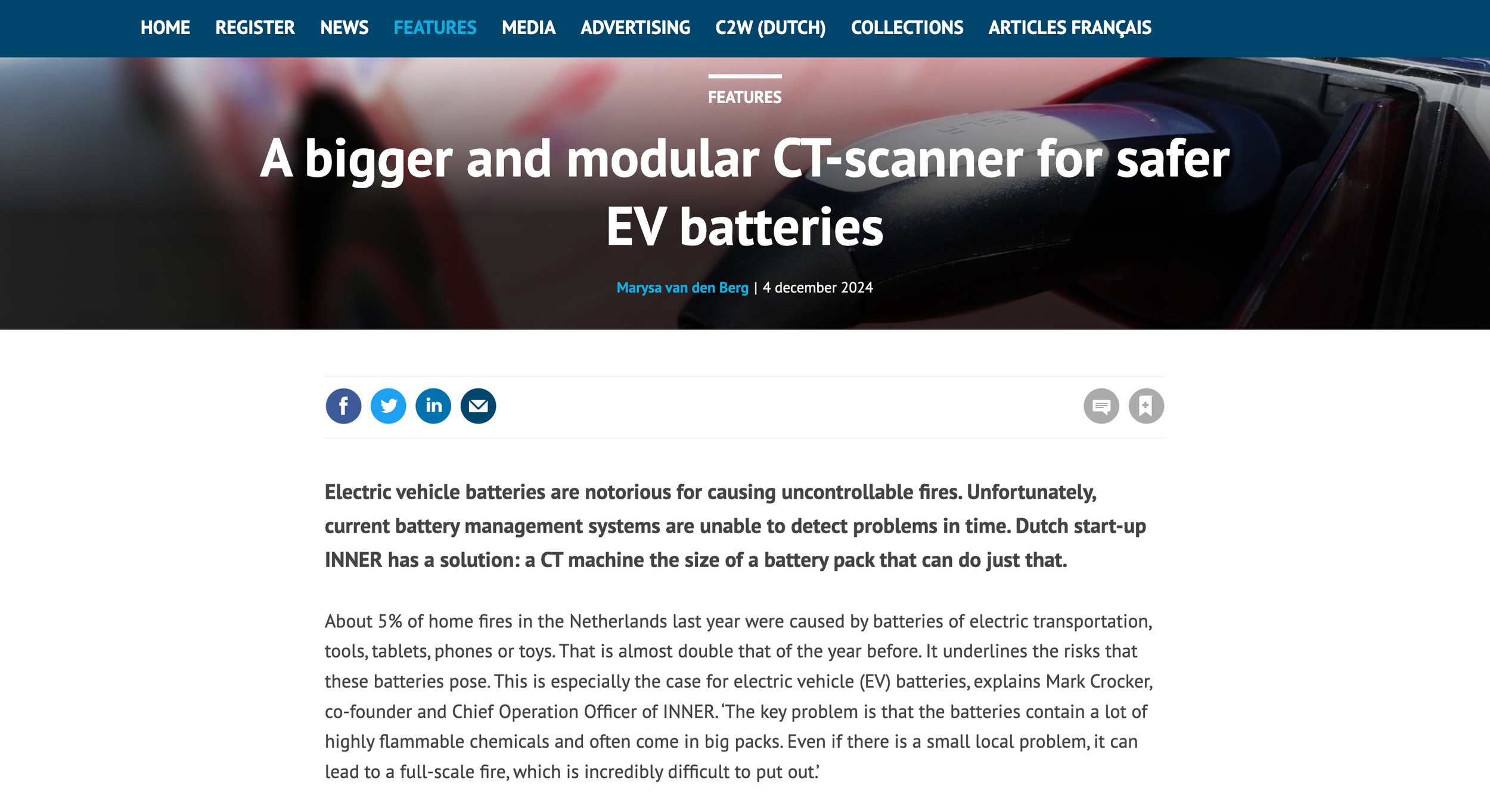 In an interview with our three co-founders, Marysa van den Berg highlights how our modular CT-scanner with integrated machine learning analysis is reshaping safety, costs, and sustainability for EV batteries.